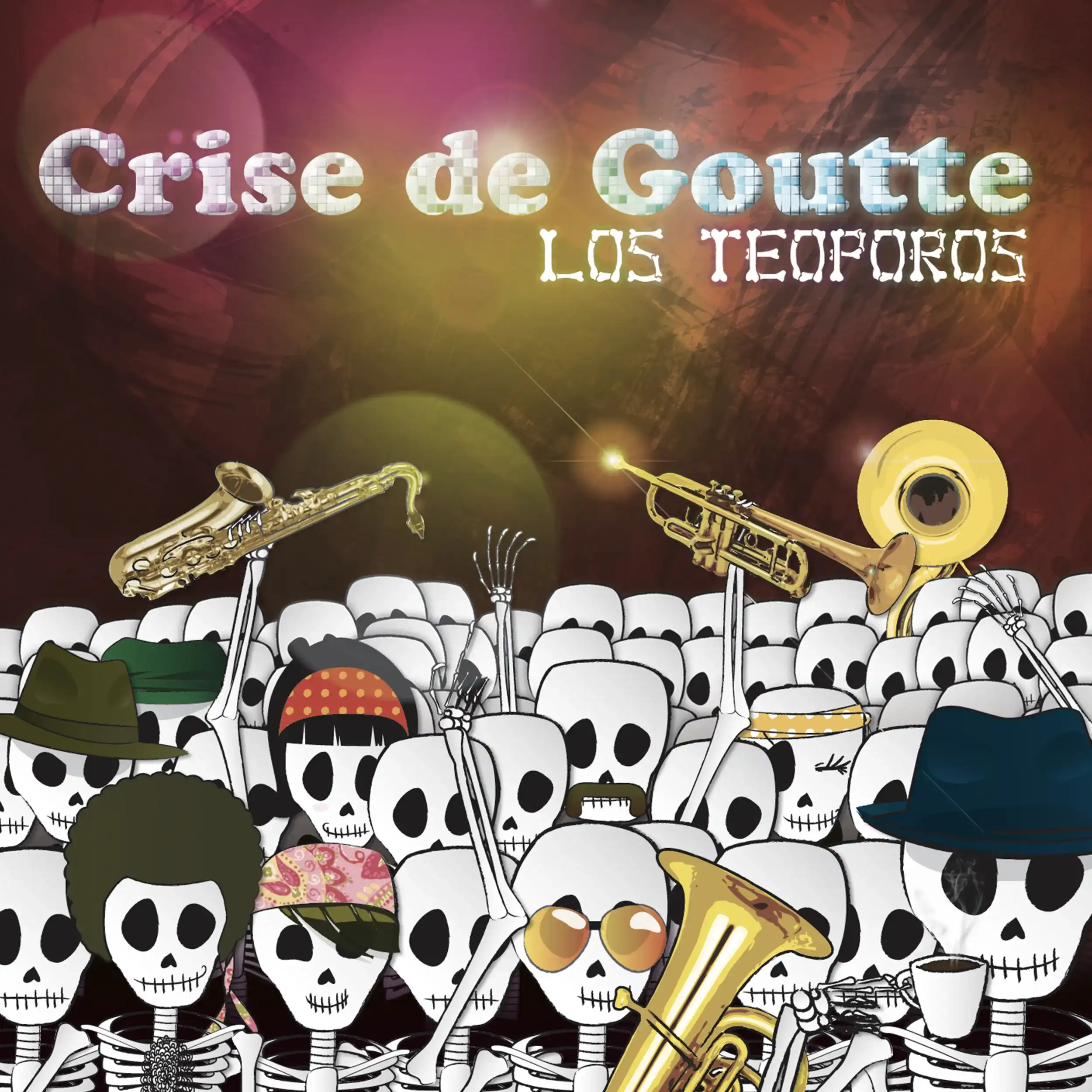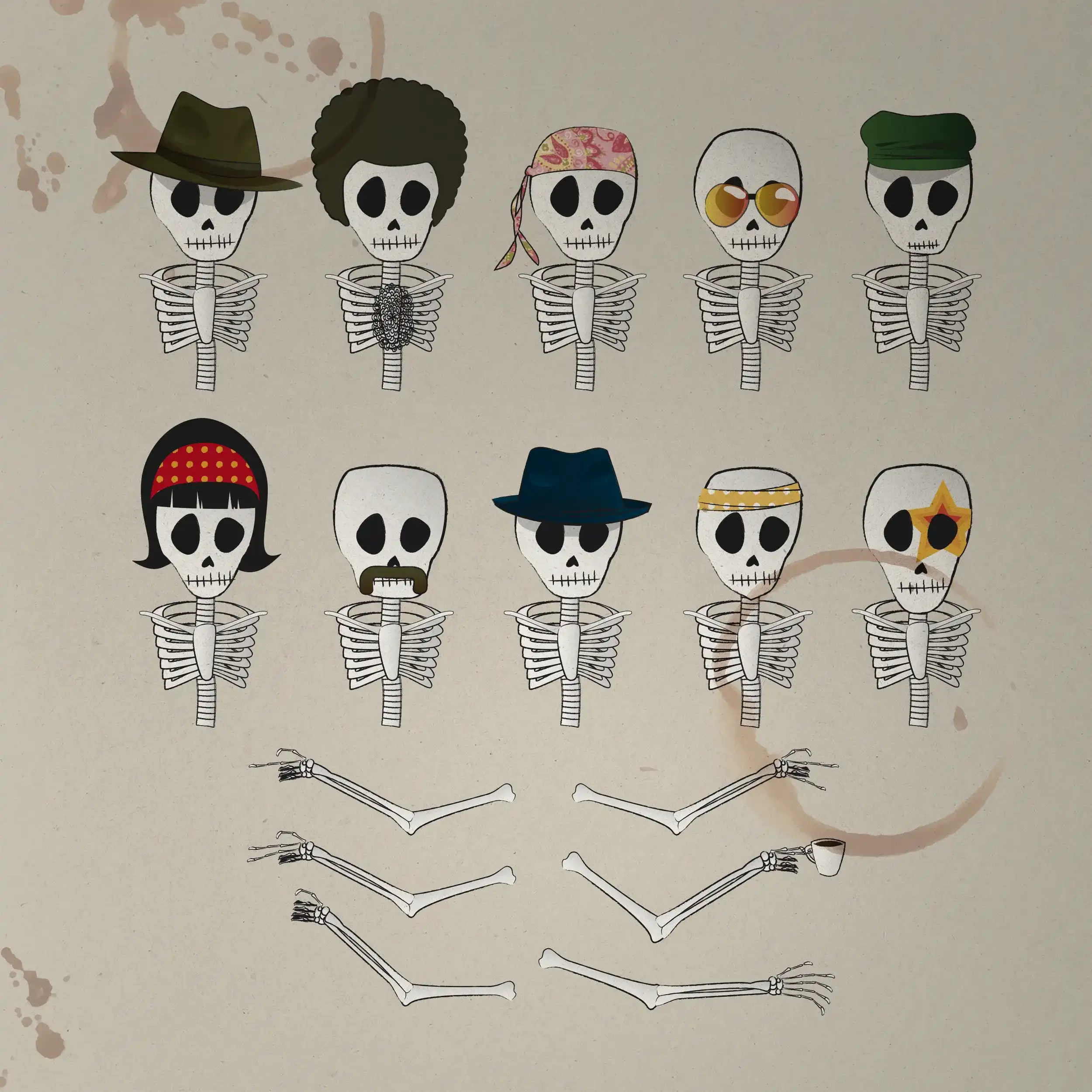 Création de la cover de l'album Crise de goutte de la fanfare Los Teoporos, avec la multiplication de leur squelette musicien historique.