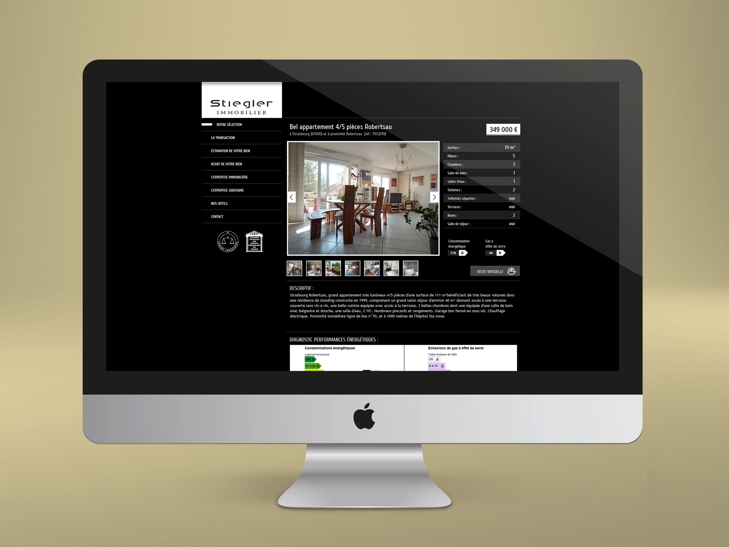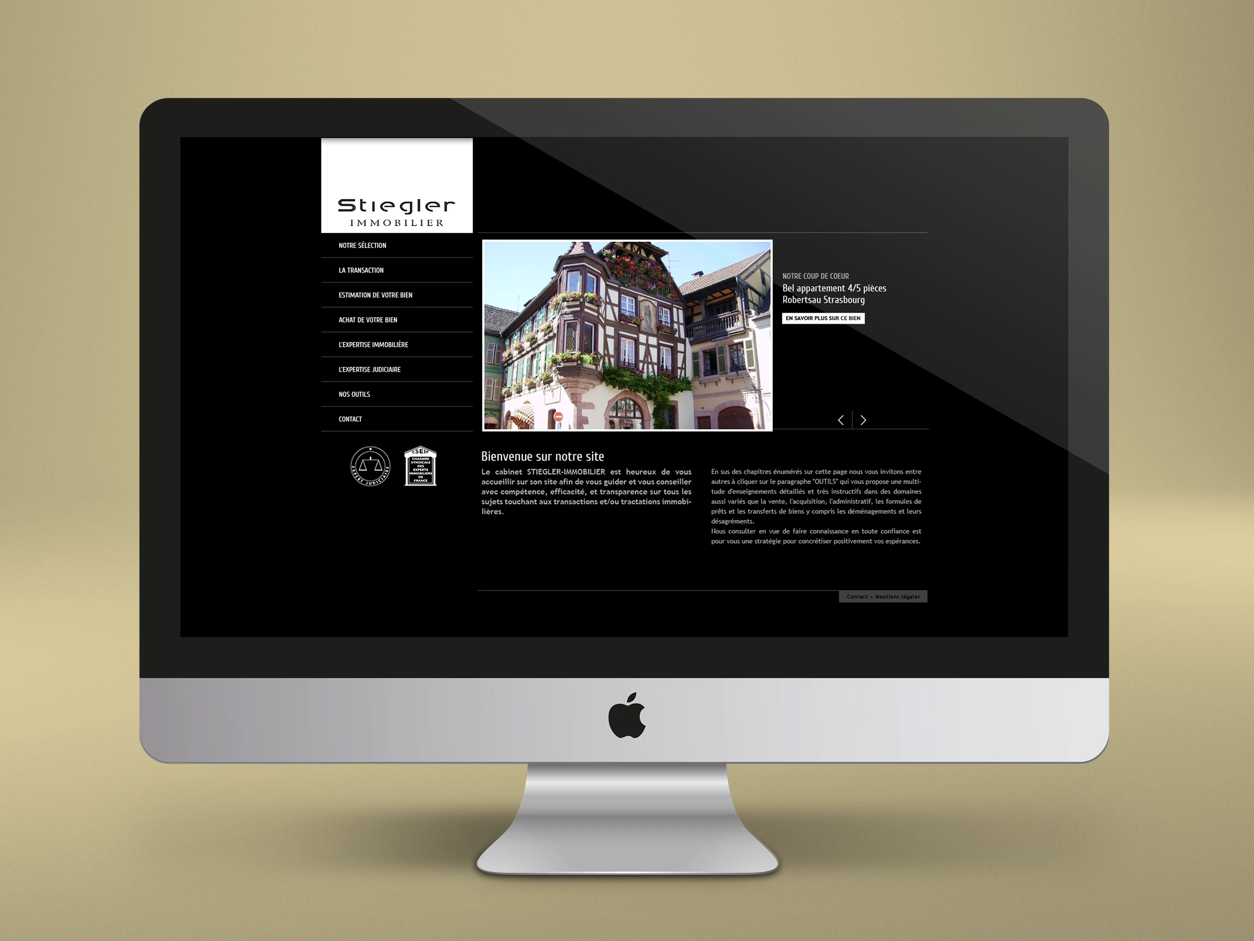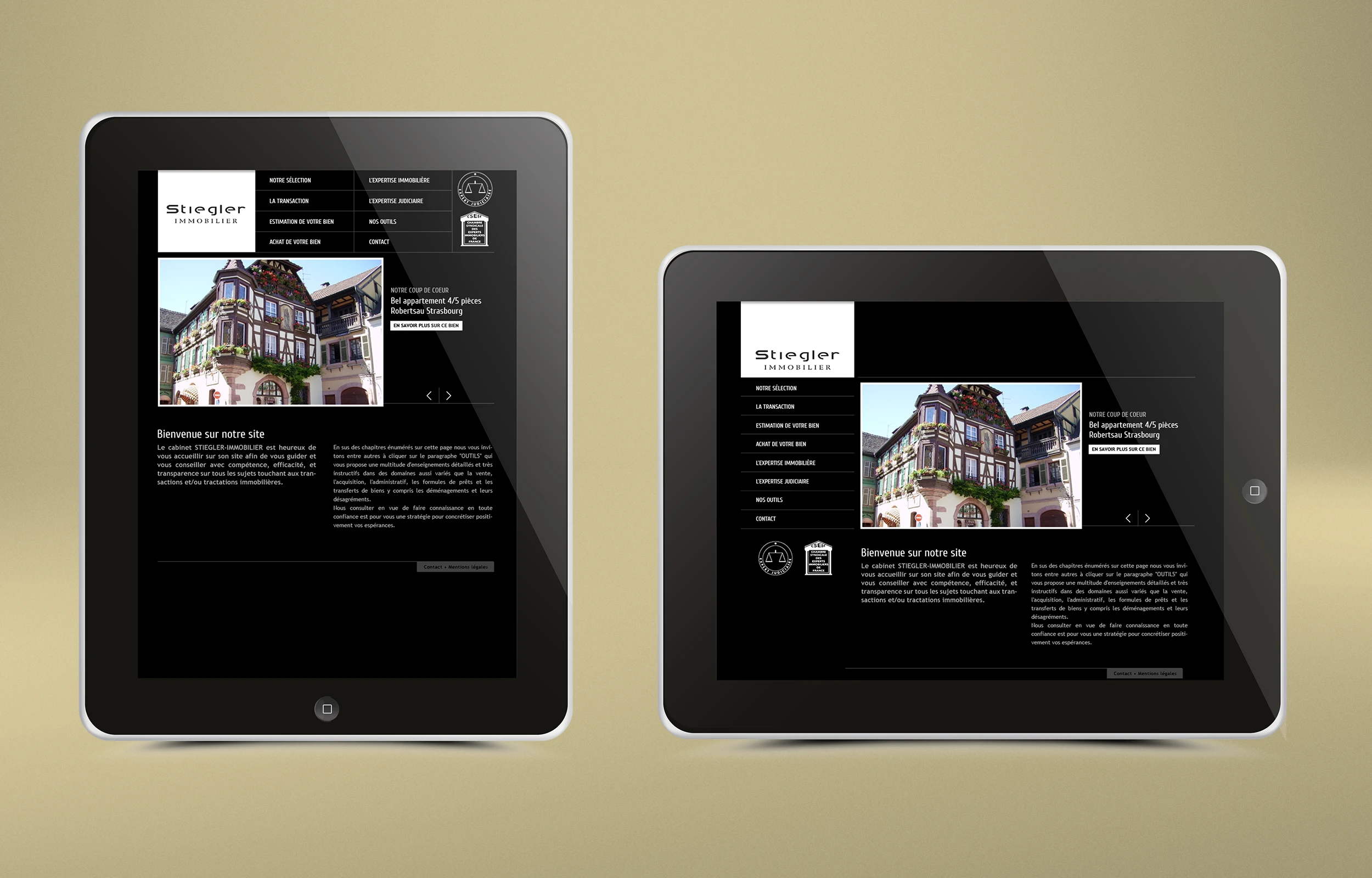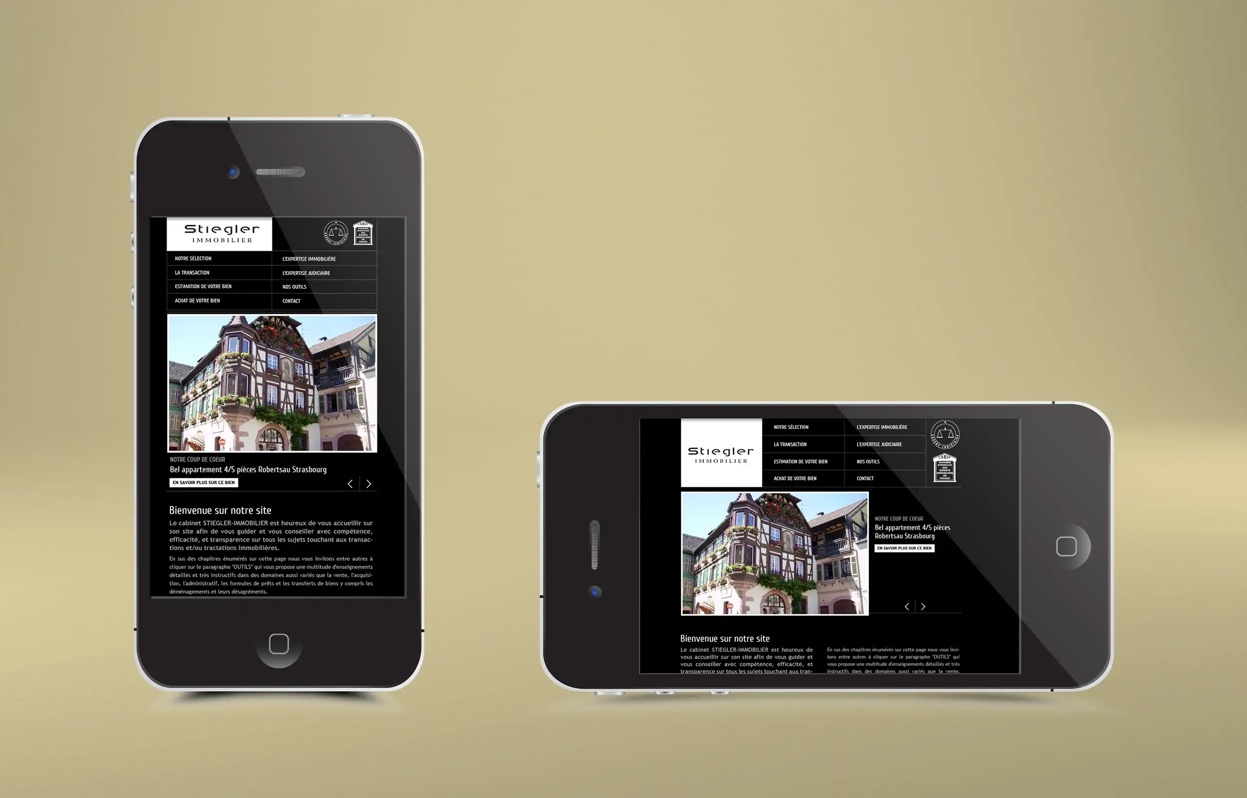 Conception visuelle du site web responsive de l'agence Stiegler Immobilier, assurant une expérience optimale sur tous les appareils.