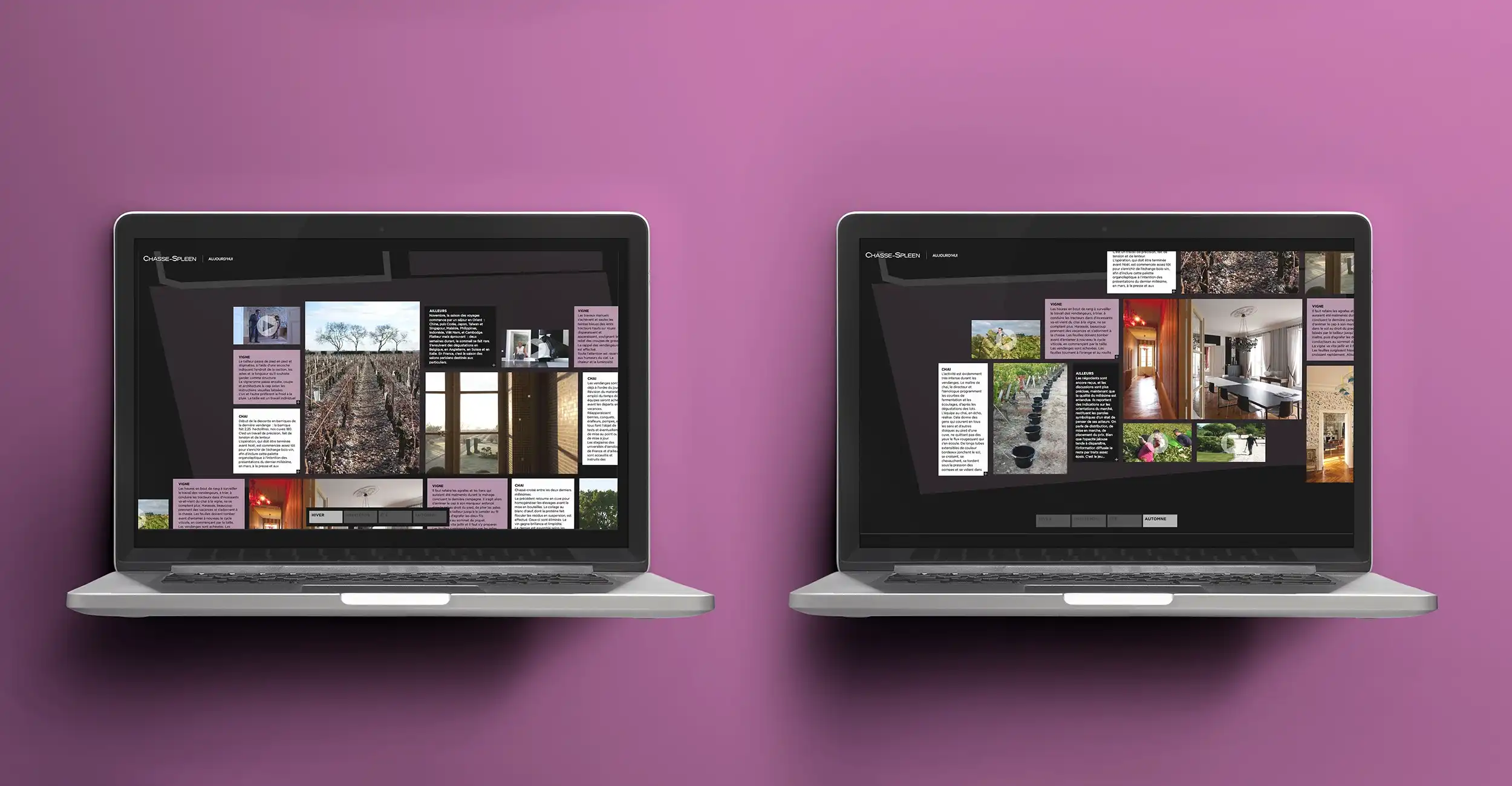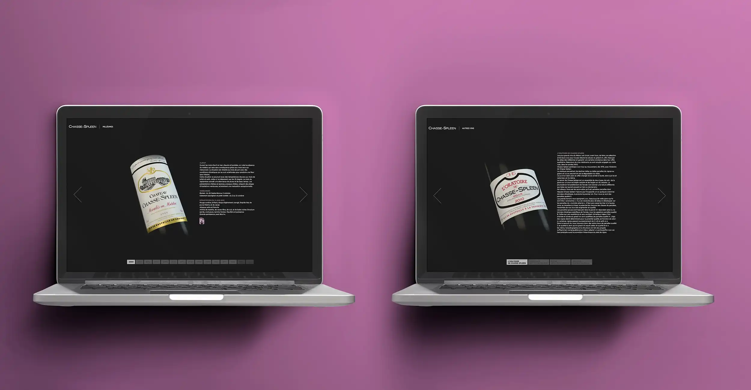 Réalisation du site flash multilingue du Château Chasse-Spleen, incluant retouches, animations, développement et intégration.