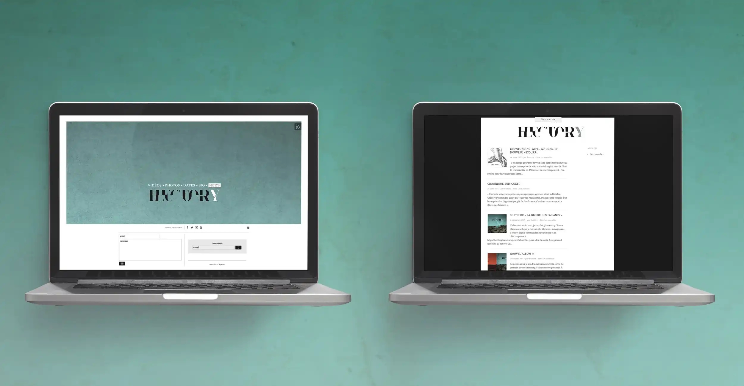 Création d'un site one-page pour l'artiste Hectory, administrable, basé sur HTML/CSS, PHP/MySQL et Jquery.