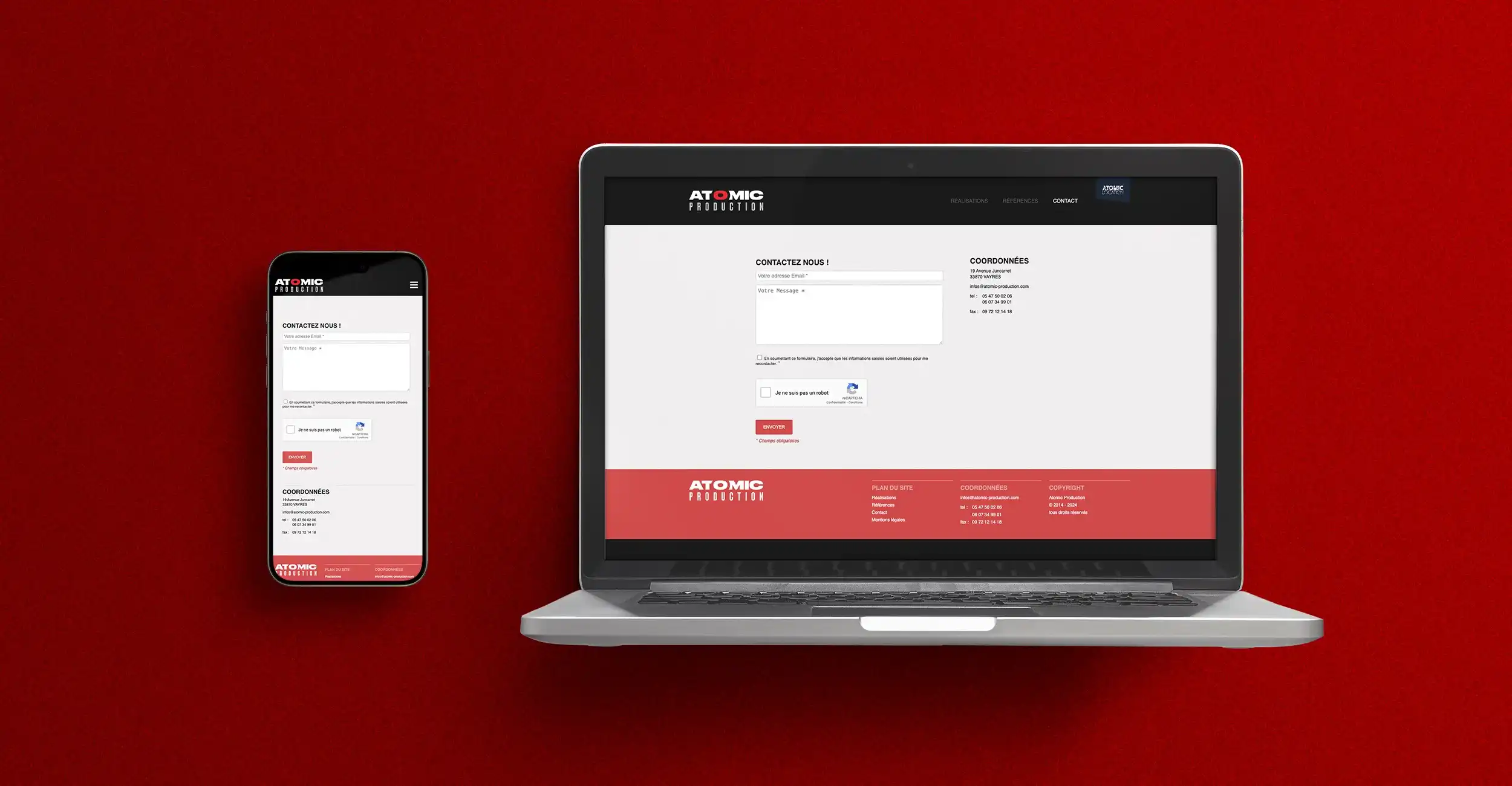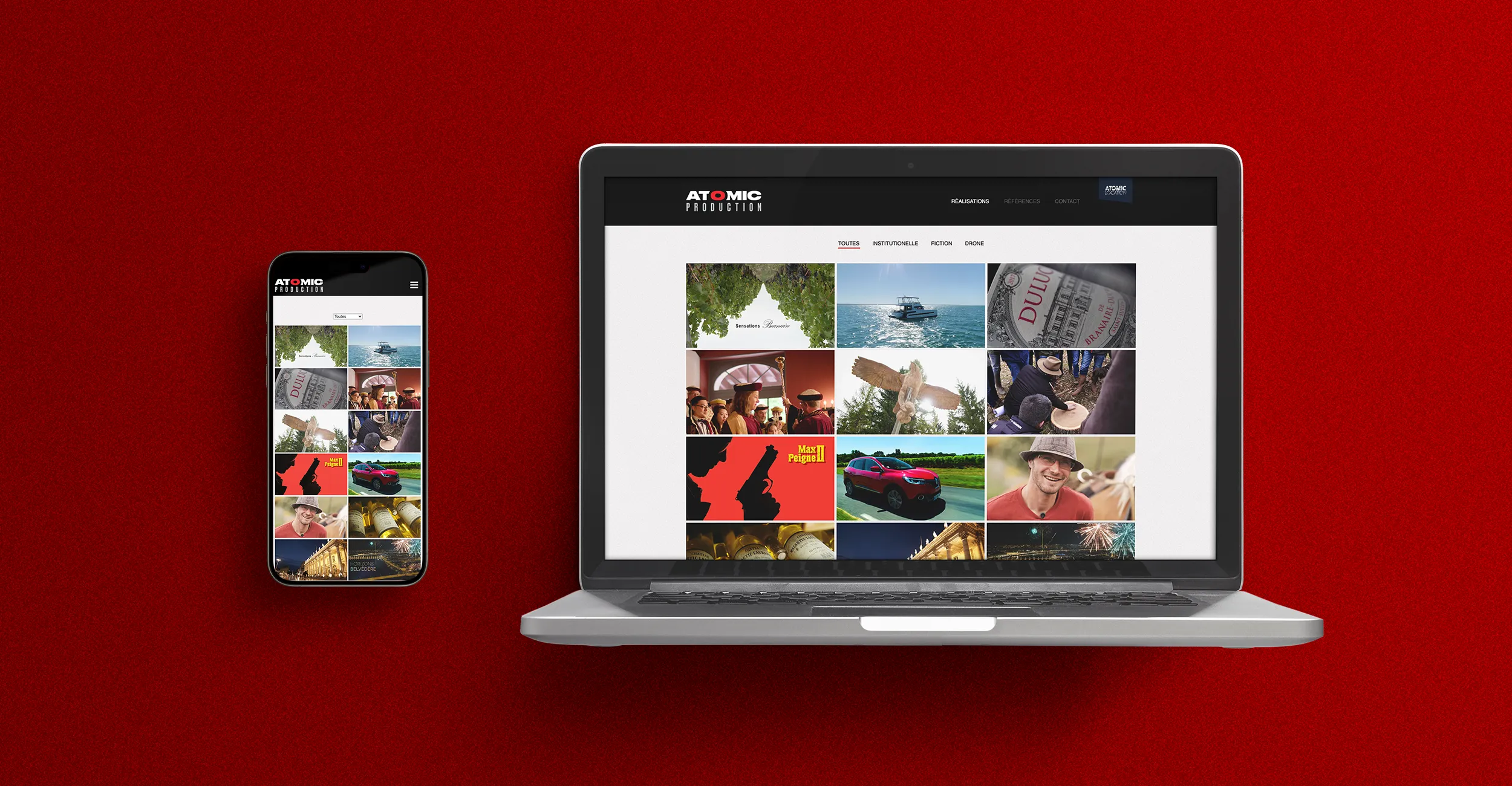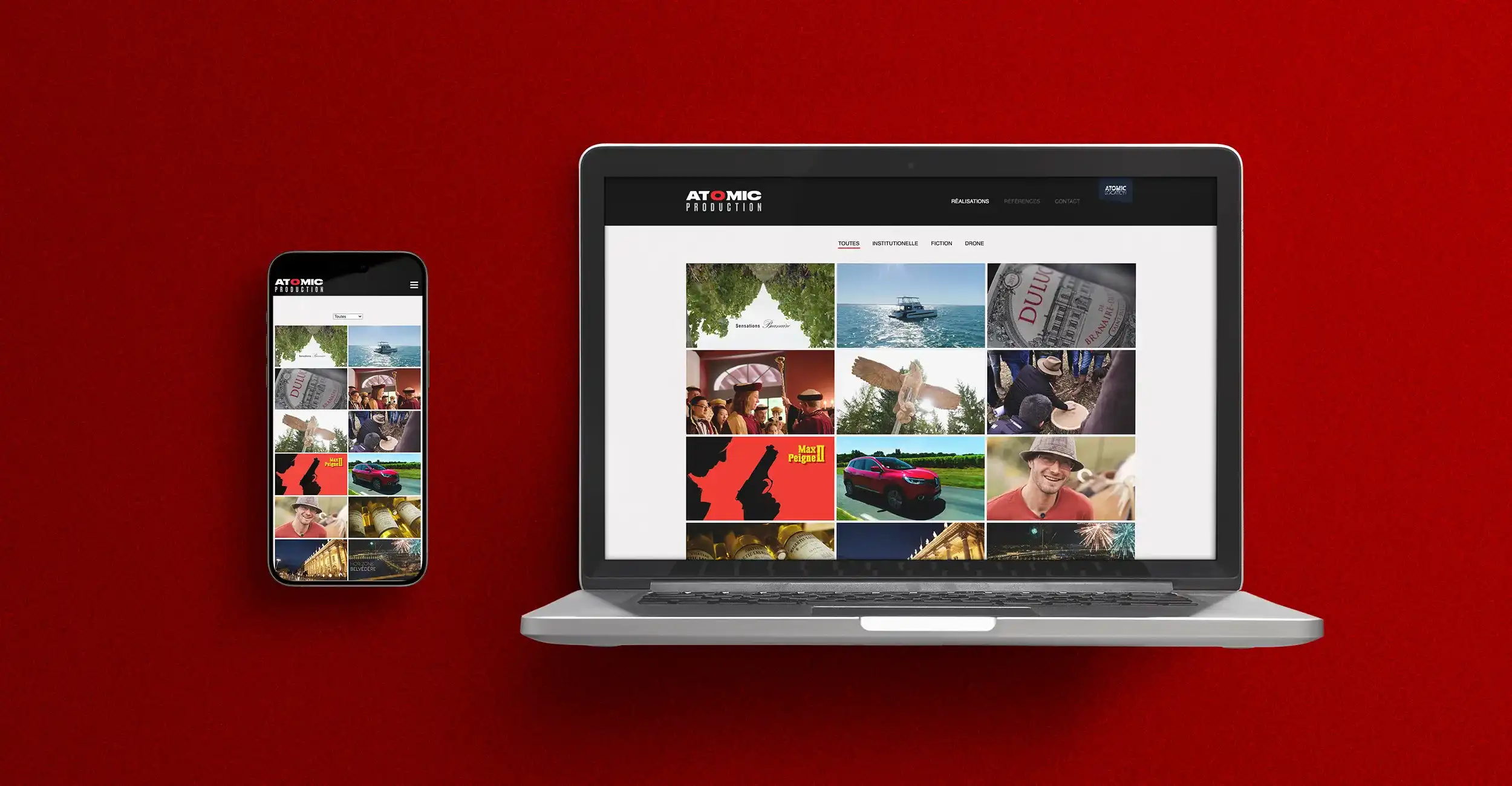 Création webdesign et intégration/développement du site de la société de production vidéo Atomic Production.