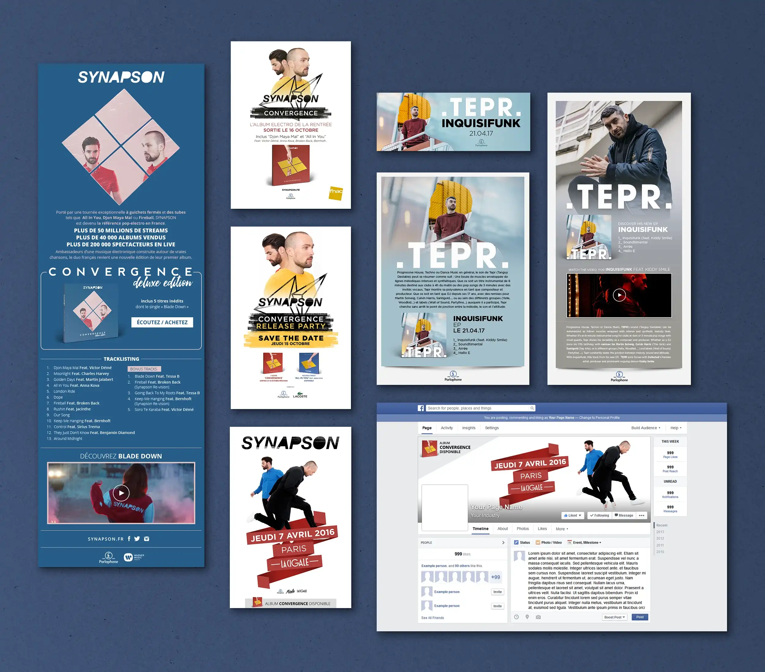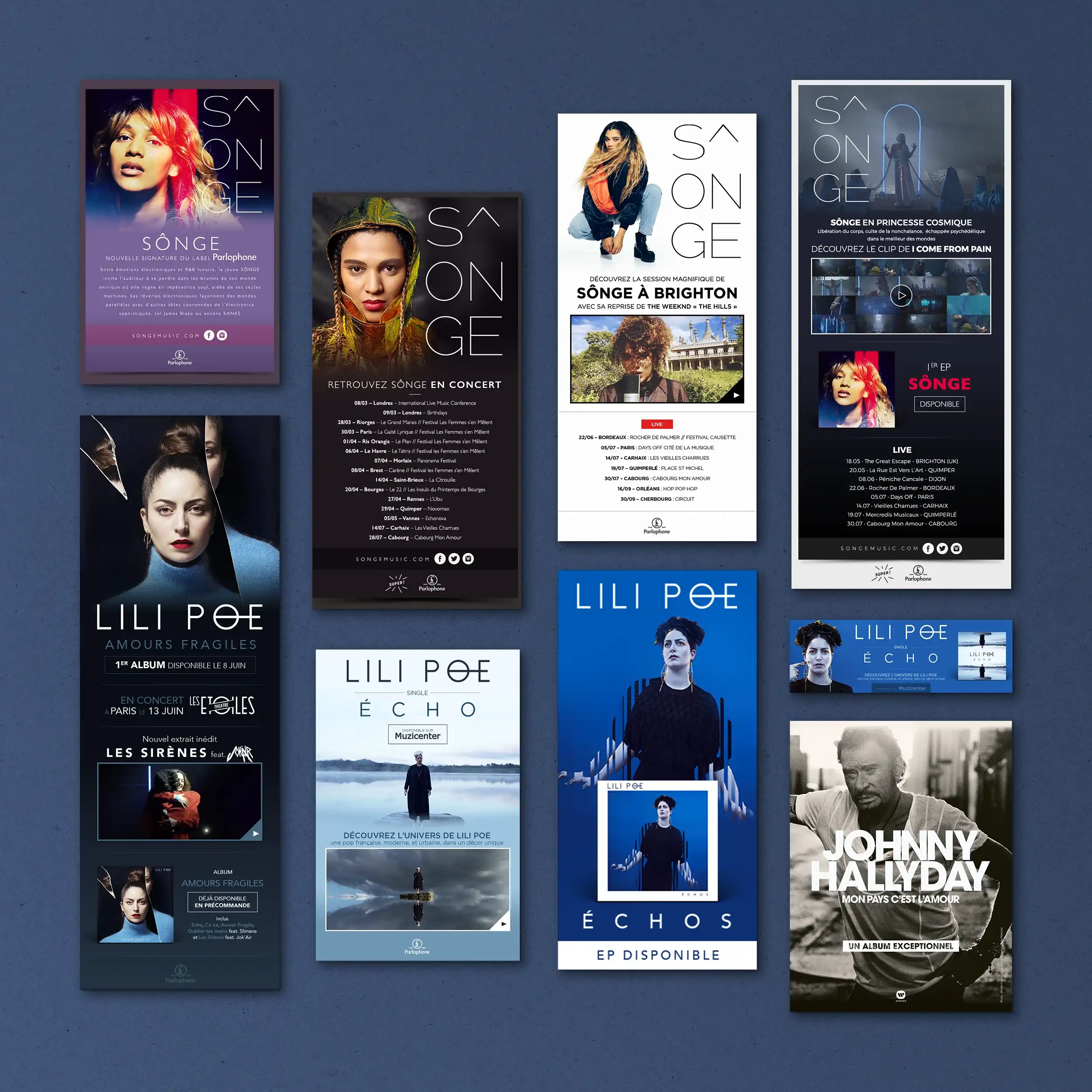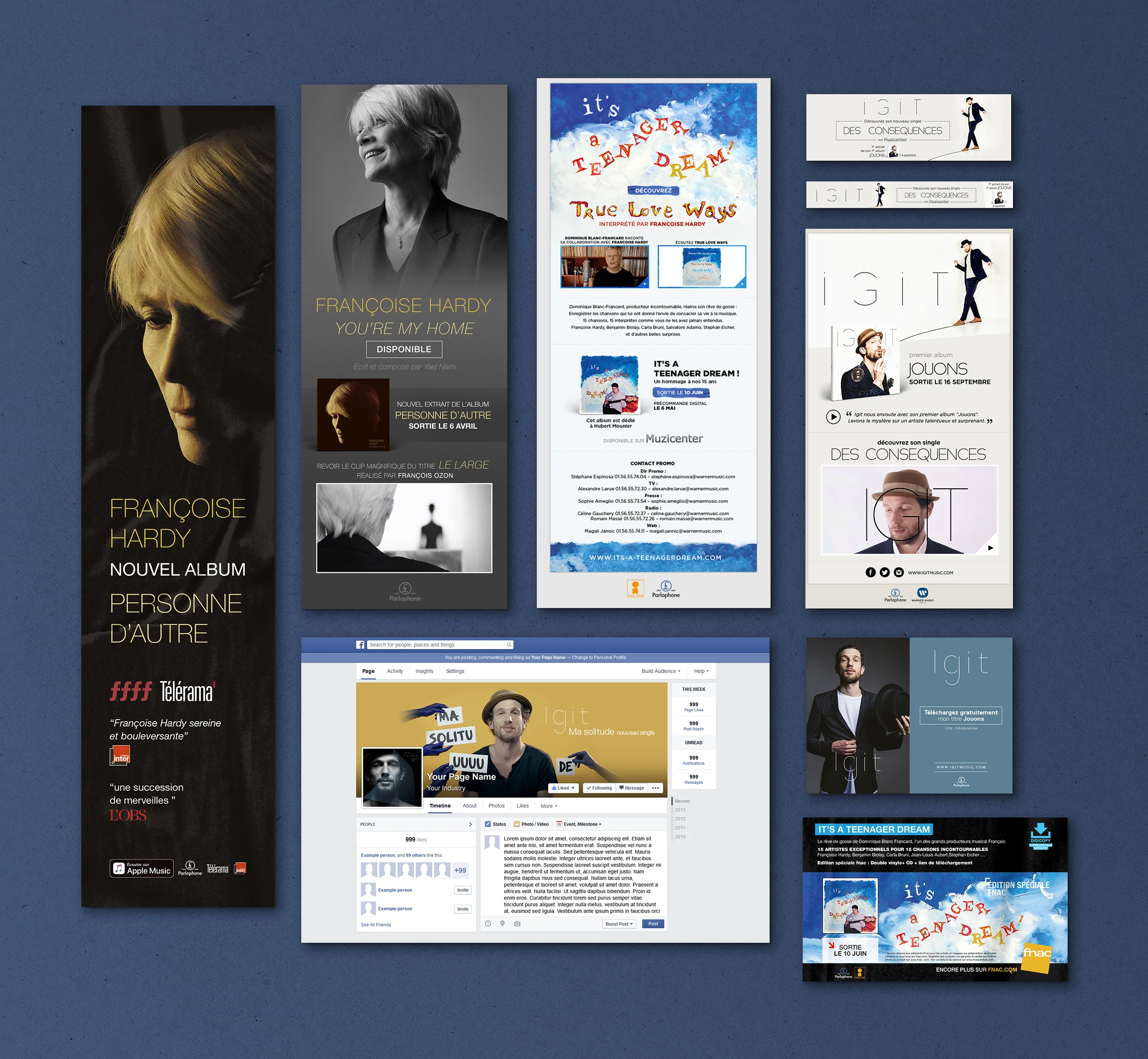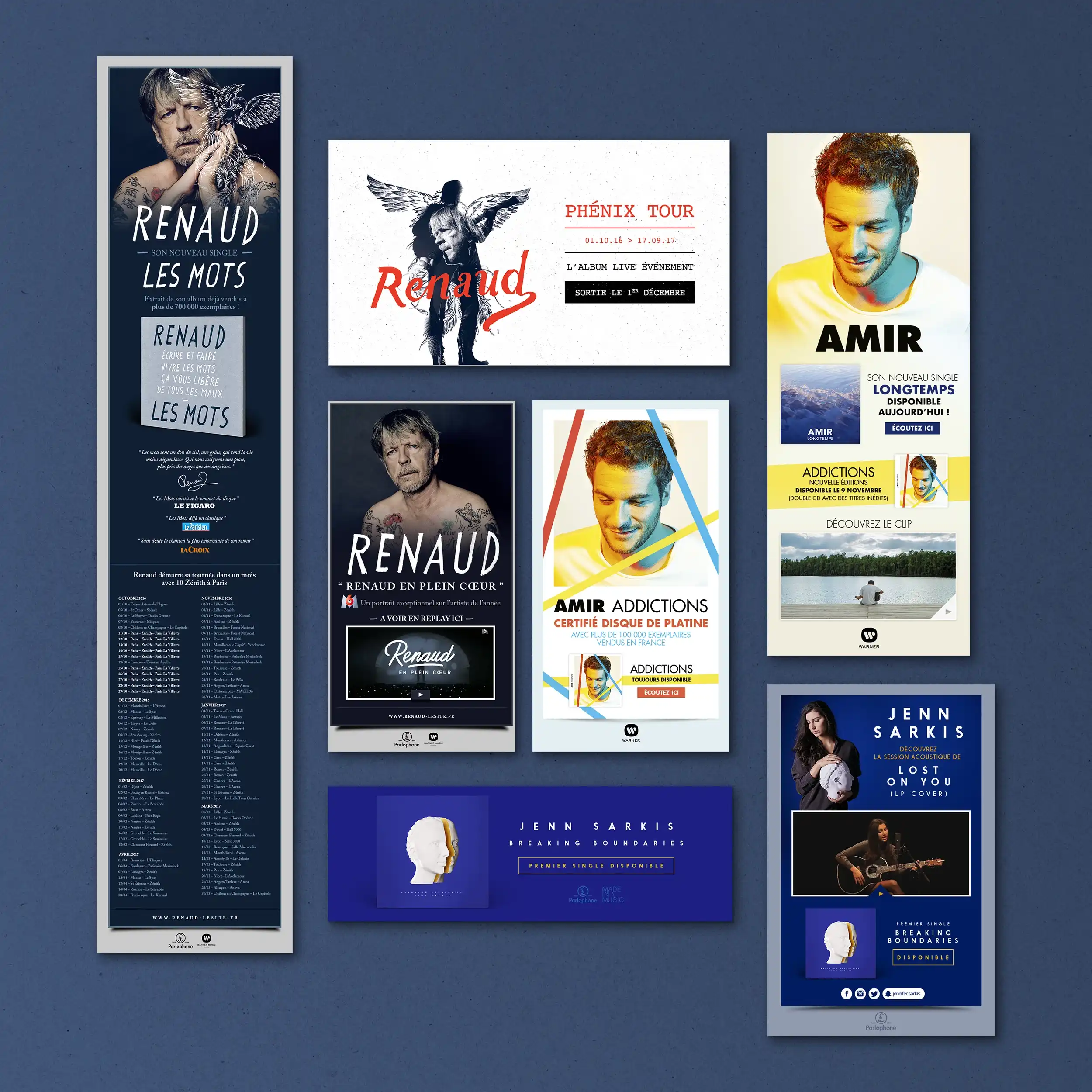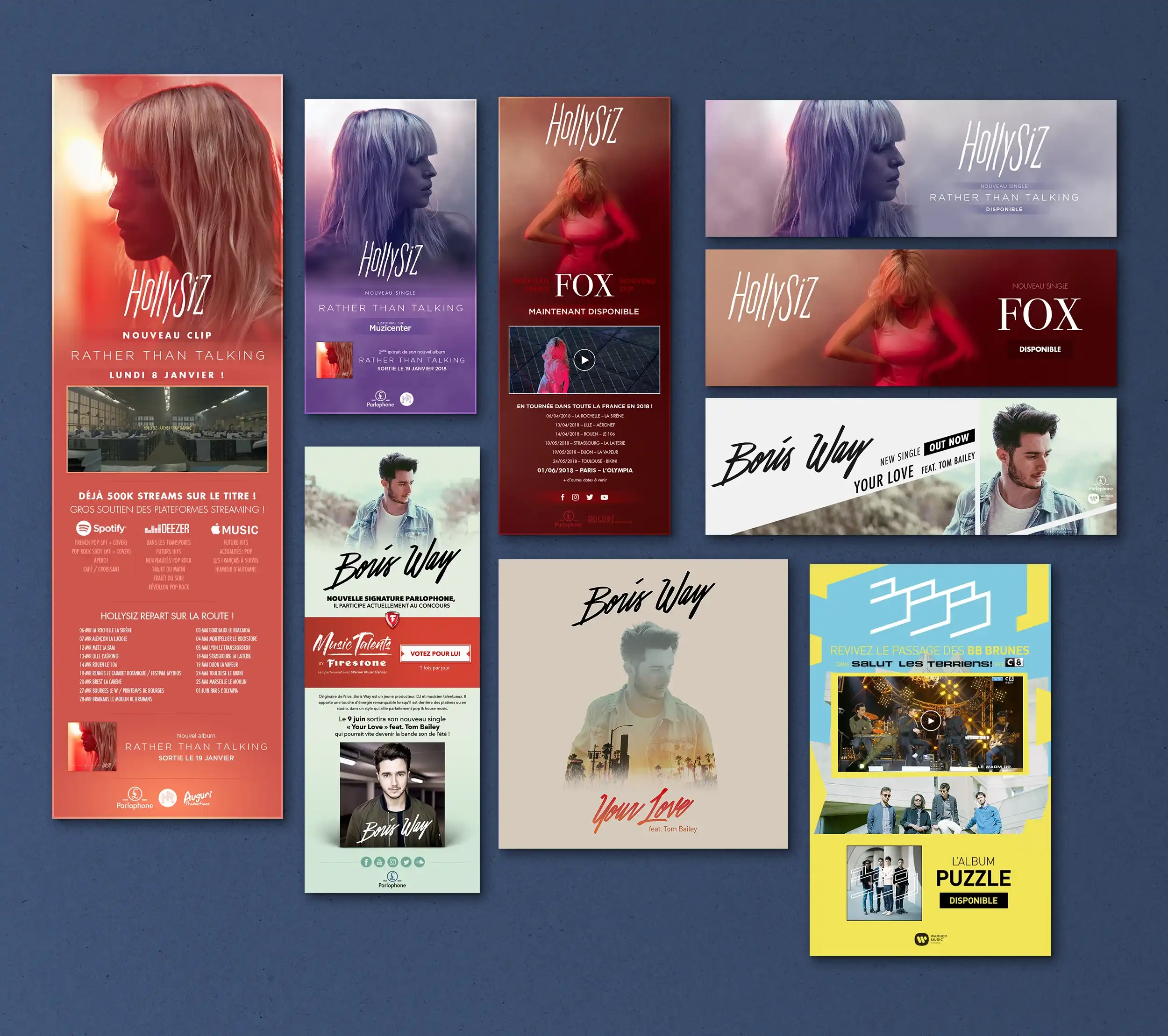 Éléments print : Affichage, pubs presse, flyers, ... Éléments web : Ecards, newsletters, newsletters responsive, mini-site, modules web, vidéos, pubs web, habillages, ...