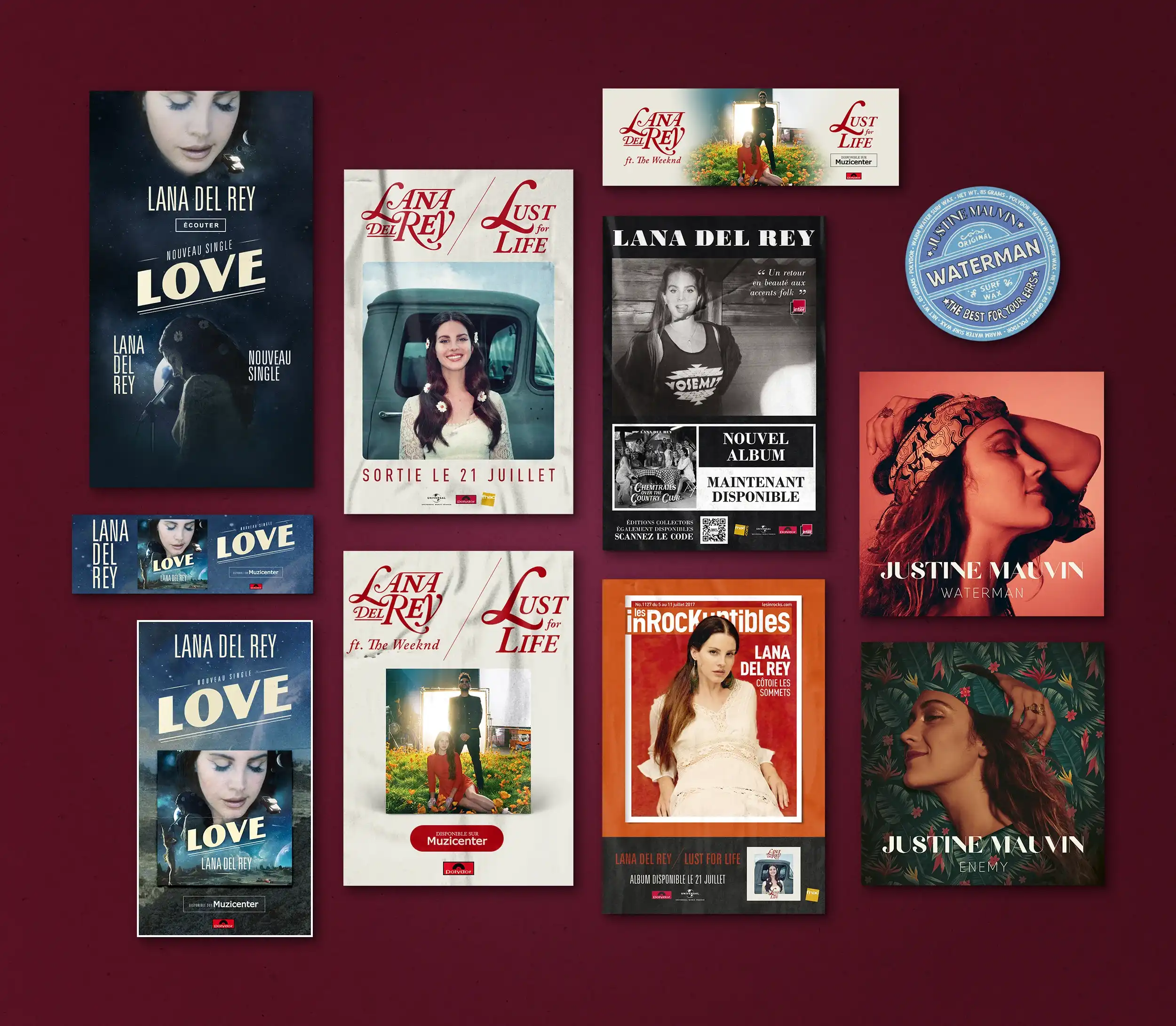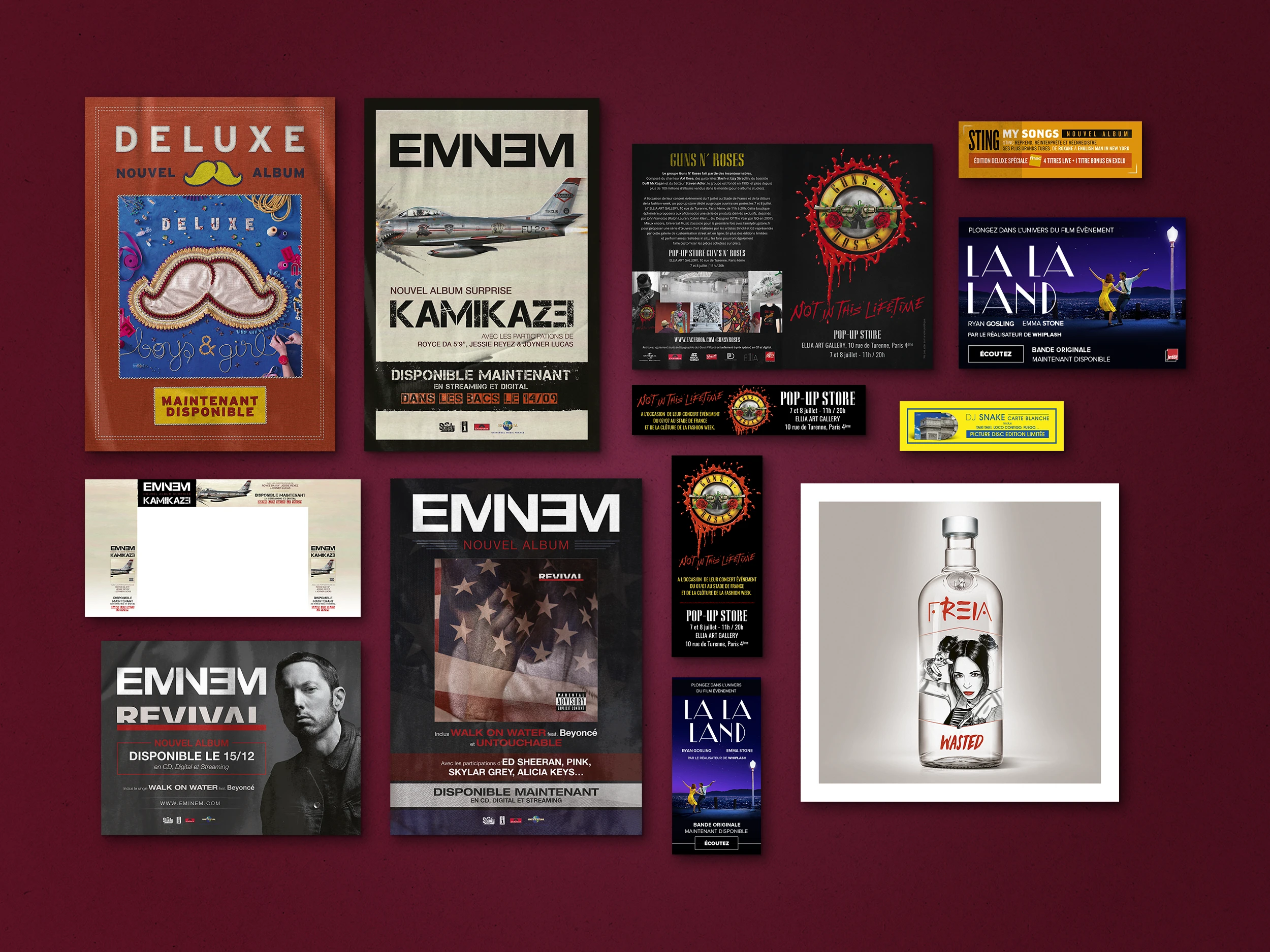 Éléments print : Affichage, pubs presse, flyers, ... Éléments web : Ecards, newsletters, newsletters responsive, mini-site, modules web, vidéos, pubs web, habillages, ...
