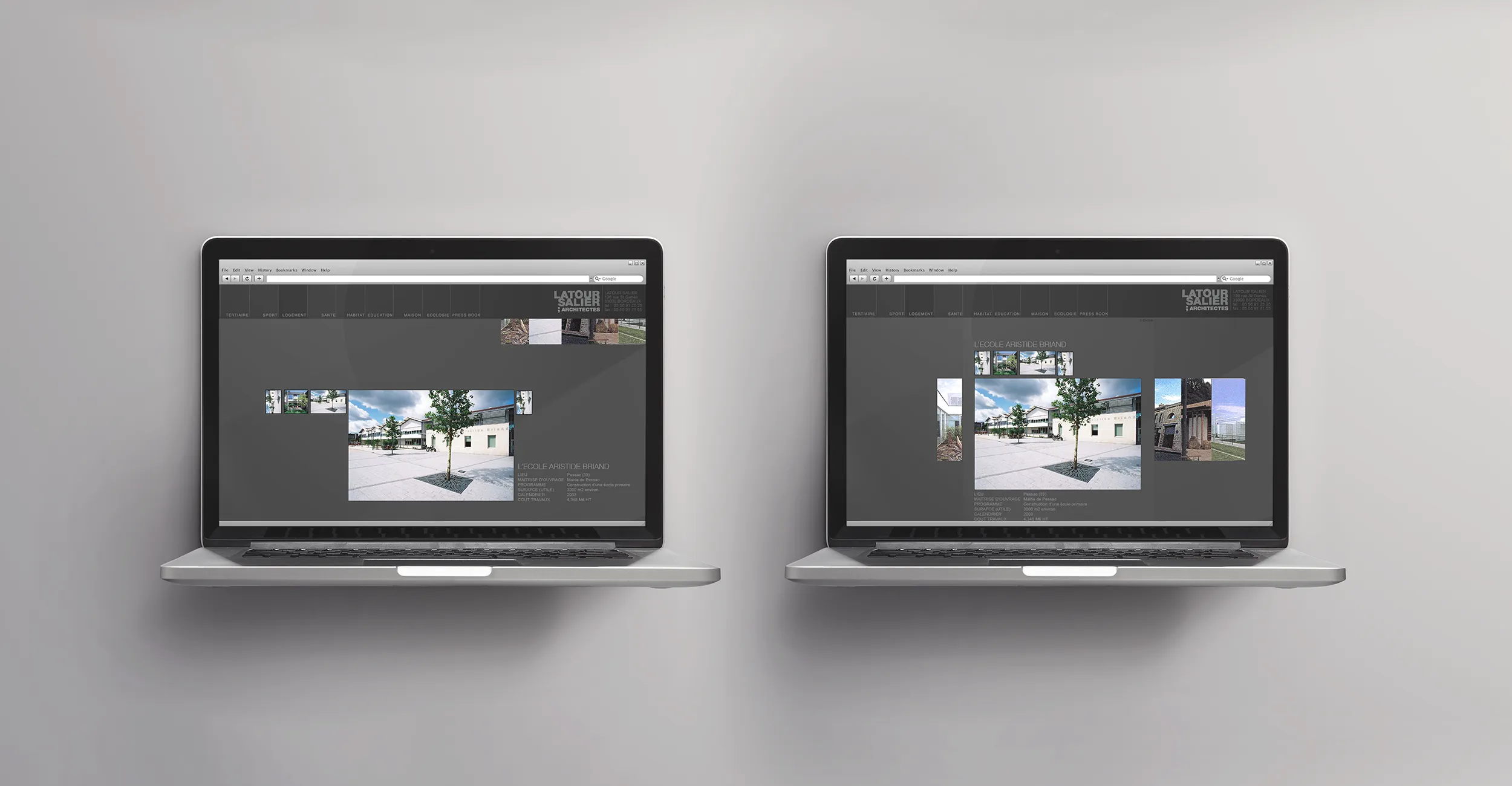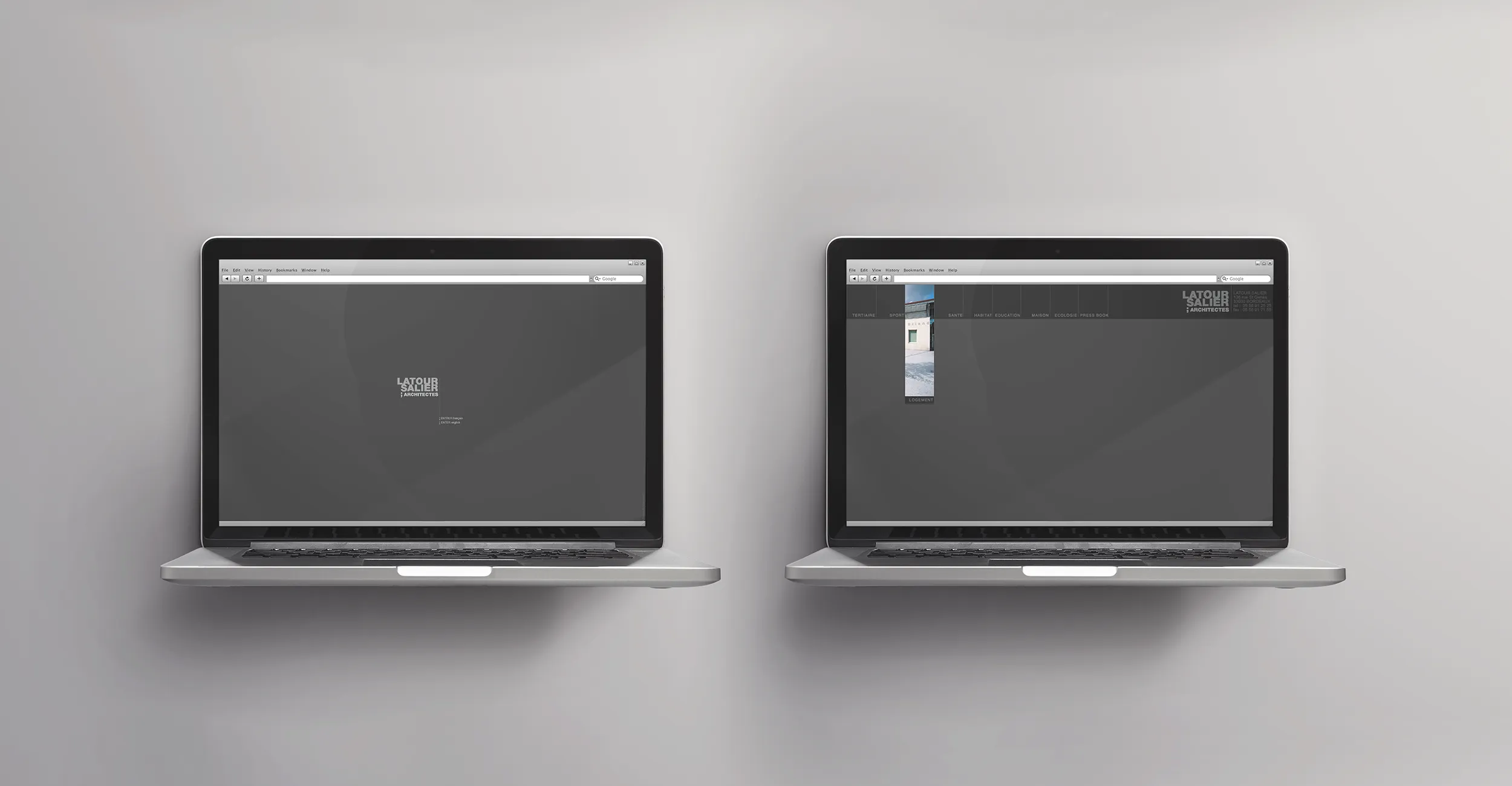 Création webdesign et intégration/développement du site portfolio de l'agence Latour Salier Architectes.